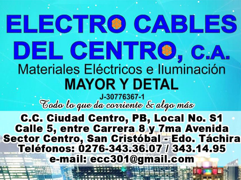 Electro Cables del Centro, C.A., empresa especializada en la venta de suministros y materiales eléctricos al mayor y detal, presente en el Mercado Nacional desde el año 2002 atendiendo con éxito a las necesidades de nuestros clientes.